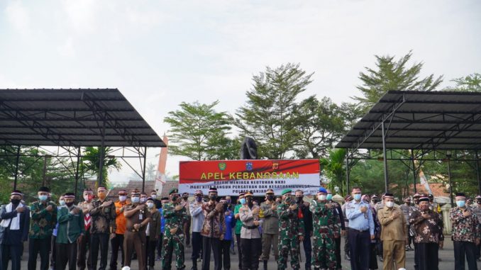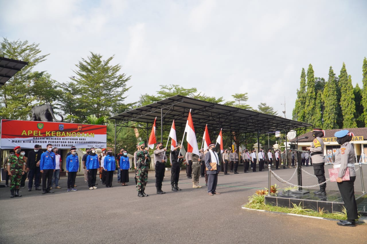 Apel Kebangsaan yang digelar di halaman Mapolres Banjar tersebut dilaksanakan dalam menjaga keutuhan NKRI, Bangun Persatuan dan Kesatuan Bangsa.
