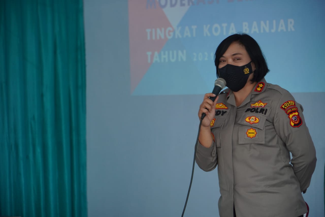 Dalam kesempatan ini Kapolres Banjar AKBP Ardiyaningsih menyampaikan kepada para peserta Focus Group Discussion Moderasi Beragama tingkat Kota Banjar bahwa ” kegiatan program kerja Polres Banjar sudah mengadakan Gebyar 2000 Vaksin dalam rangka HUT Bhayangkara ke 75 tahun 2021. dikarenakan Wilayah Kota Banjar sekarang sudah menjadi Wilayah zona merah.