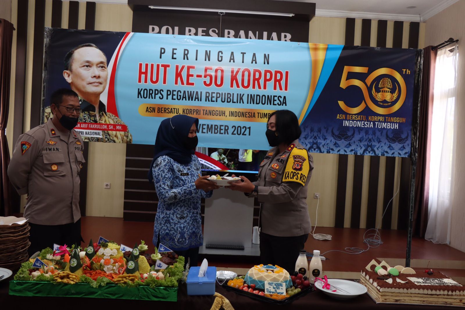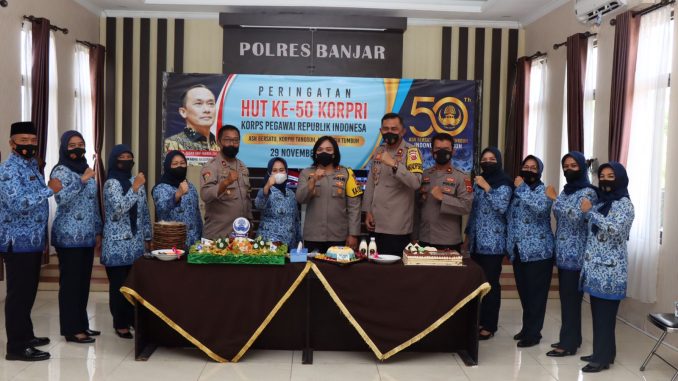Banjar, mediaotonomiindonesia.com Memperingati Hari Ulang Tahun (HUT) Korpri (Korp Pegawai Republik Indonesia) yang ke-50, Aparatur Sipil Negara (ASN) di lingkungan Polres Banjar mengikuti acara dan menggelar syukuran secara sederhana, Senin (29/11/2021).