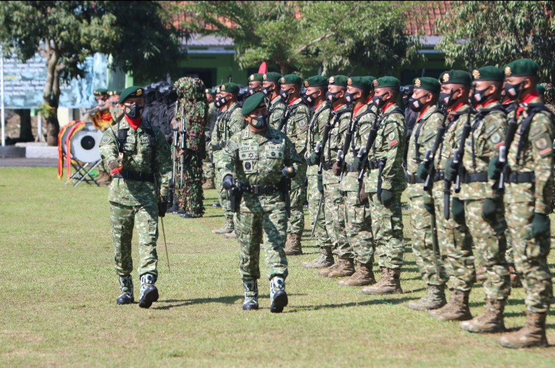 TASIKMALAYA, MEDIA OTONOMI INDONESIA – Panglima Divisi Infanteri 1 Kostrad Mayjen TNI Dedy Kusmayadi memimpin upacara serah terima jabatan Komandan Brigif Raider 13/1Kostrad dari Kolonel Inf Moch Mahbub Junaedi, S. Sos, M.IP kepada Letkol Inf Herry Purwanto S. Sos bertempat di Lapangan Upacara Mabrigif Raider 13/1 Kostrad Tasikmalaya, Minggu (28/3/2021).