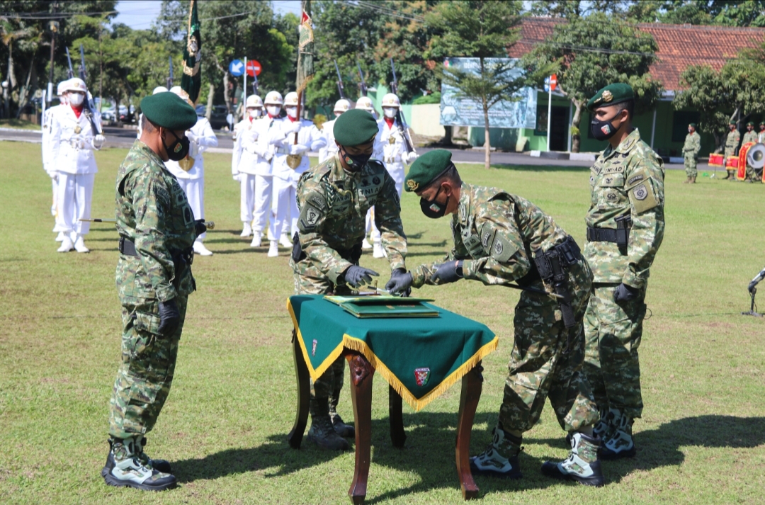 Acara serah terima jabatan dilaksanakan dengan standar protokol kesehatan yang sesuai dengan anjuran pemerintah agar terhindar dari wabah Covid – 19 yang saat ini masih tinggi angka penyebarannya. (YR – MC Yonif R 323/BP Kostrad)