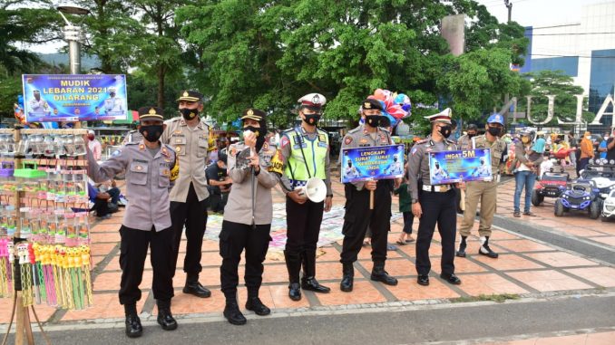 “Ya sore ini kami bersama Pa Waka, Para Kasat dan Personel kembali mengedukasi, mensosialisasikan himbuan prokes dan larangan mudik tahun 2021 ini” ucap Kapolres.
