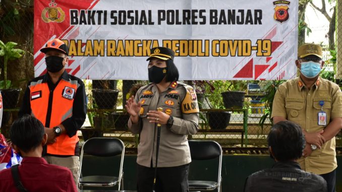 Menurut Kapolres Kota Banjar AKBP Ardiyaningsih, kali ini Polres Banjar memberikan bantuan paket sembako kepada para seniman yang terdampak Covid-19 dalam situasi PPKM level 4.