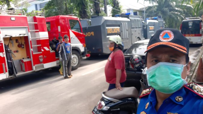TIGARAKSA, MOI – Badan Penanggulangan Bencana Daerah (BPBD) Kabupaten Tangerang kembali melakukan penyemprotan Desinfektan di sejumlah wilayah di Kabupaten Tangerang dengan di bantu oleh Polresta Tangerang dan Unsur Kecamatan, Senin (31/03/2020)