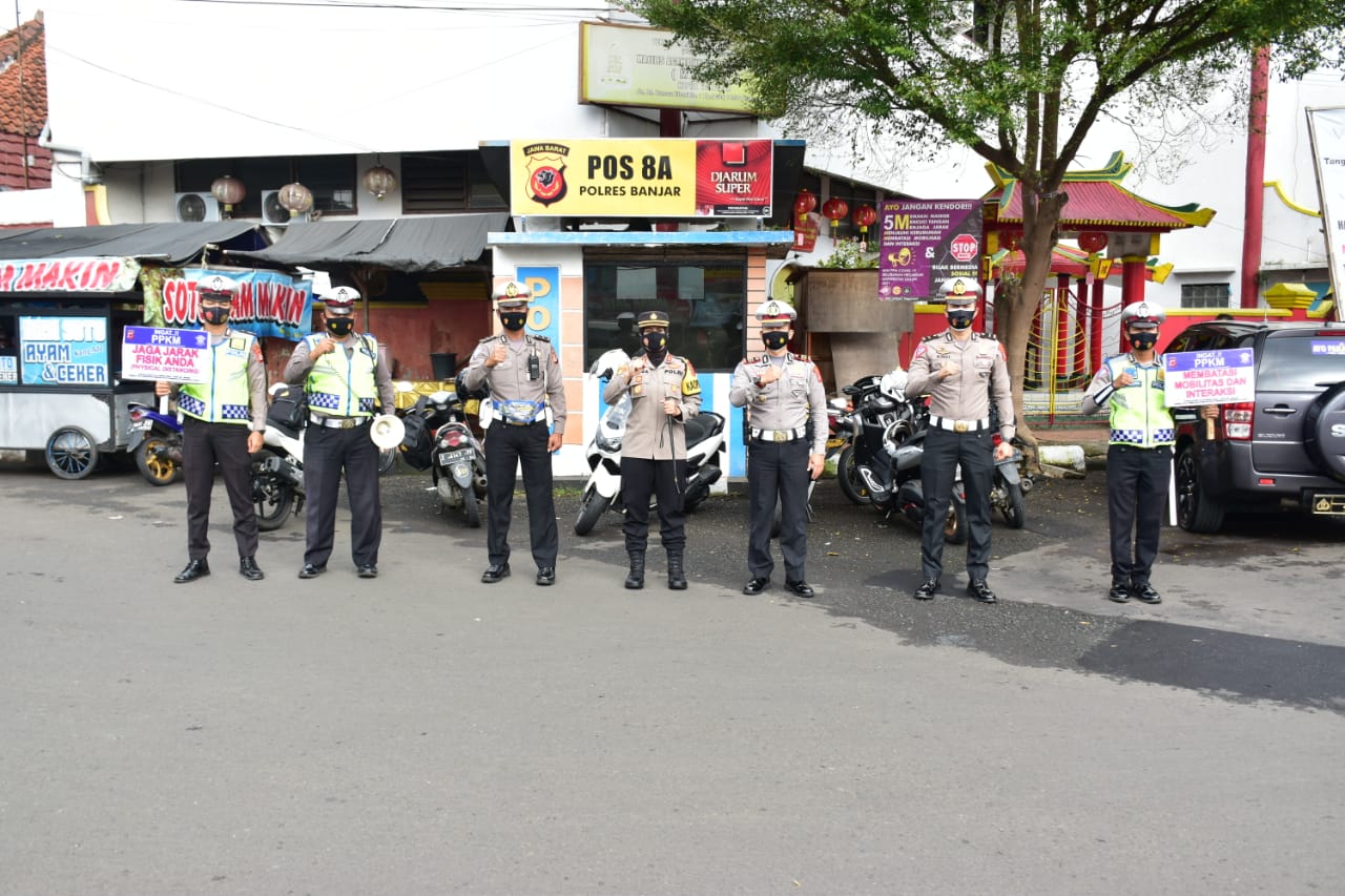 Hari ini kami kembali sampaikan himbauan prokes, dan beberapa pelanggar prokes tadi kami tegur karena kedapatan tidak menggunakan masker, ingat angka kasus Covid-19 di Kota Banjar ini masih belum menunjukan angka penurunan, untuk itu cukup laksanakan 5M sebagai antisipasi terpapar covid-19, kata Kapolres.