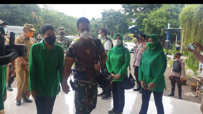 mediaotonomiindonesia.com, Cilegon – Danrem 064/MY, Brigjen TNI Gumuruh Winardjatmiko, S.E.,M.B.A. Dan Ketua Persit Kertika Chandra Kirana Koorcab Rem 064 PD III/Siliwangi Ny. Atie Gumuruh menyambut kedatangan rombongan Kepala Staf Angkatan Darat, Jenderal TNI Andika Perkasa dan Ibu Ketua Persit Chandra Kirana Ny. Hetty Andika Perkasa di Pelabuhan ASDP Merak, Sabtu, (31/07/2021).