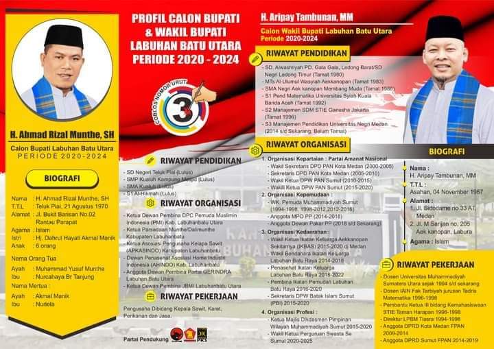 LABURA, MEDIA OTONOMI INDONESIA – Ahmad Rizal Munthe, SH dan H. Aripay Tambunan, MM adalah pasangan Calon Bupati dan Calon Wakil Bupati daerah pemilihan Kabupaten Labuhan Batu Utara (Labura) Provinsi Sumatera Utara