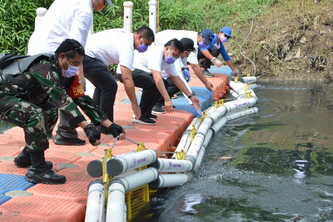 “Selain bank sampah kami juga membangun waste trap yang digunakan untuk menjaring dan menahan laju sampah sampai ke hilir dengan bentang panjang 15 meter,” Kata Ade