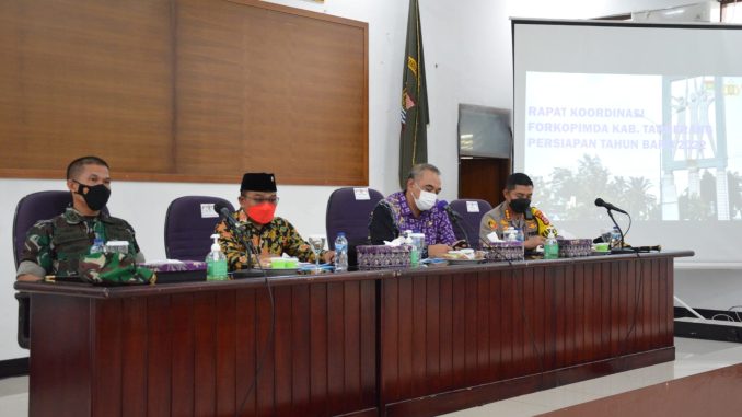 “Saya mohon perhatiannya bahwa pelaksanaan tahun baru kali ini tidak ada kegiatan dan semua harus sudah selesai batas maksimalnya adalah jam 10.00 malam, apa lagi ada perayaan kembang api, konser musik dan lain sebagainya ini. Mohon diperhatikan baik-baik,” pinta Bupati Zaki ketika memimpin rapat koordinasi yang digelar di Aula Dharma Wanita Pendopo Bupati Tangerang, Kamis (30/12/21).